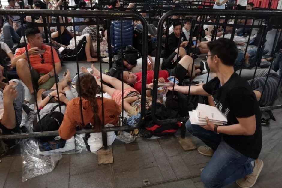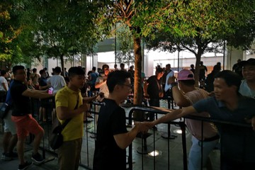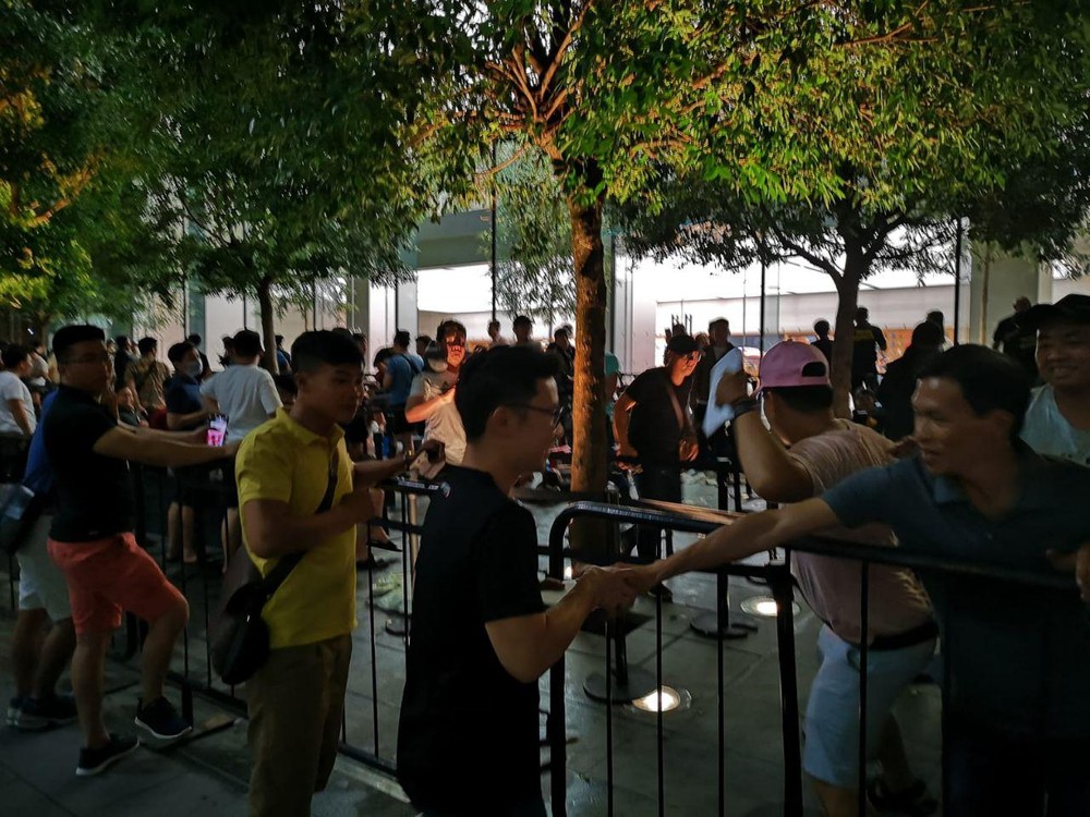 Como podemos ver na imagem acima, na fila da Apple Store de Singapura – sob condições climáticas nada favoráveis (o calor estava absurdo) – a fabricante chinesa começou a distribuir baterias externas para os sheeplesque aguardavam ansiosamente a abertura das portas.