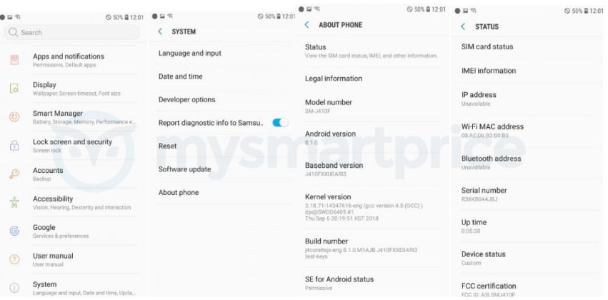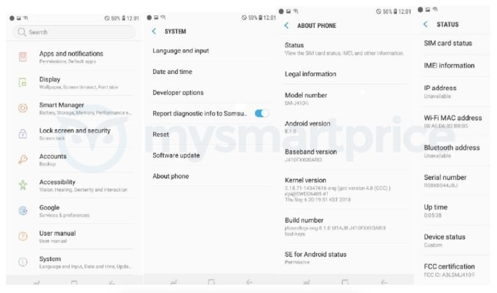 Os números desviam um pouco do padrão visto no Galaxy J4 (SM-J400) e do Galaxy J4 Plus (SM-J415). Aparentemente, os rumores dizem que ele ter;a o mesmo hardware do dispositivo principal dessa série, com a única diferença de executar o Android Go.