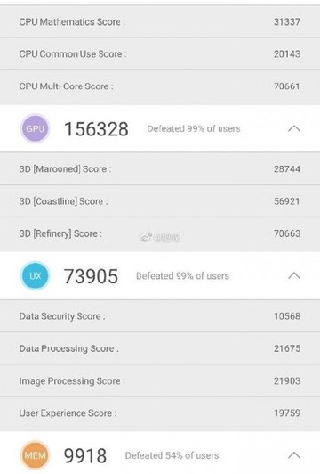 Na imagem abaixo você pode conferir o suposto teste de benchmark registrado no AnTuTu. Enquanto o Kirin 980 já registrou os 273 mil pontos e o A12 Bionic ultrapassou os 352 mil pontos, vemos claramente a marca de incríveis 362 mil pontos, quase dez mil a mais que o concorrente mais poderoso.